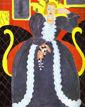 En esta época en que Matisse pintó la Dama azul , su pintura ha sufrido una transformación . Se ha elejado de las pinturas en las que las modelos de sus cuadros aparecen desnudas y opta por otro tipo de pinturas en que la falta de equilibrio es bastante acusada.