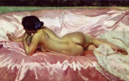Se dice que Sorolla era muy mujeriego pero estaba también muy enamorado de su mujer y , tras una noche de amor muy intensa , Clotilde accedió a posar desnuda para su esposo.