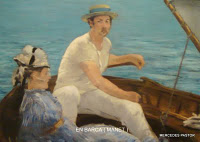 Manet pintó este cuadro llamado En barca en 1874 cuando trabajaba con Monet y Renoir en Argenteuil , un pueblo del Sena al noroeste de París La luminosidad en este cuadro es muy pronunciada y el día soleado se hace evidente en los reflejos en el rostro y la manga blanca del canotier. La mujer es desconocida y también Manet se remite a las audaces composiciones de las estampas japonesas.